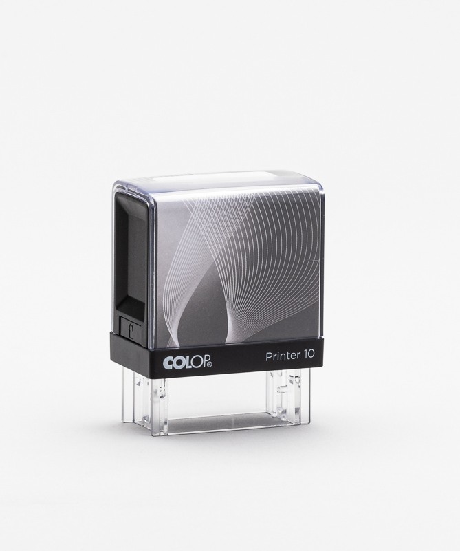 Der Colop Printer 10 ist ein Stempel für Büros oder für unterwegs. Der Stempel besticht durch sein Design und ist durch verschiedene Einleger individualisierbar. Der Abdruck hat die maximalen Maße 27 x 10 mm und bietet Platz für bis zu 3 Zeilen.